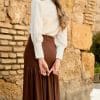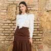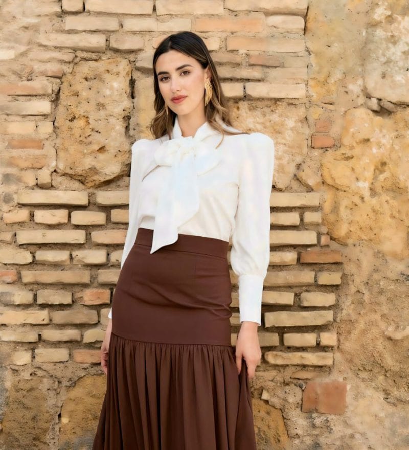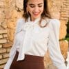 Blusa de manga larga con botones un puño. Con hombreras y lazada al cuello.