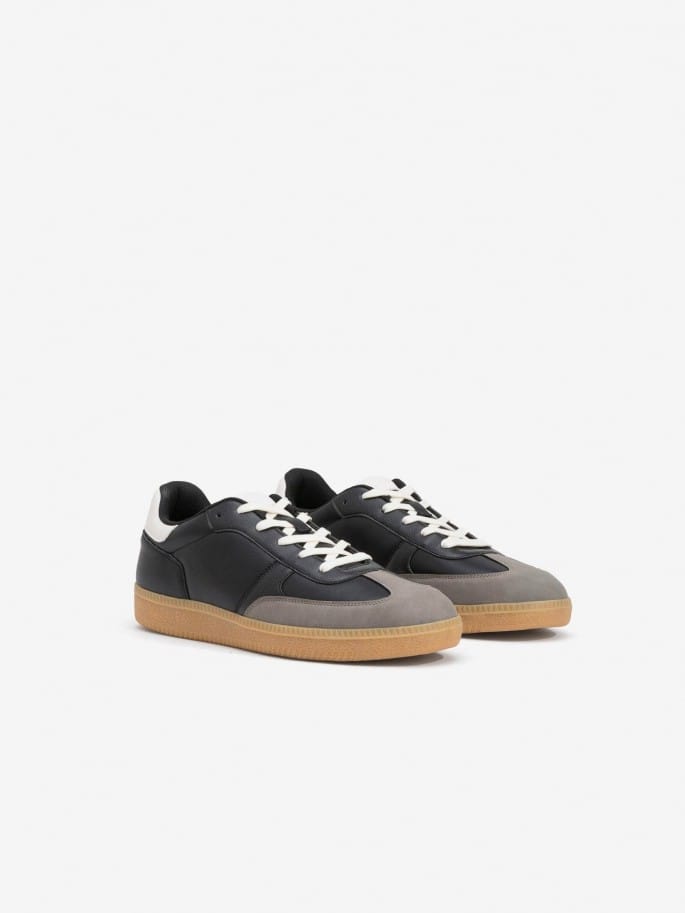 Zapatillas con cierre mediante cordones. Combinación de materiales. Detalle de serraje en la punta. Suela a contraste. Altura 2,5 cm