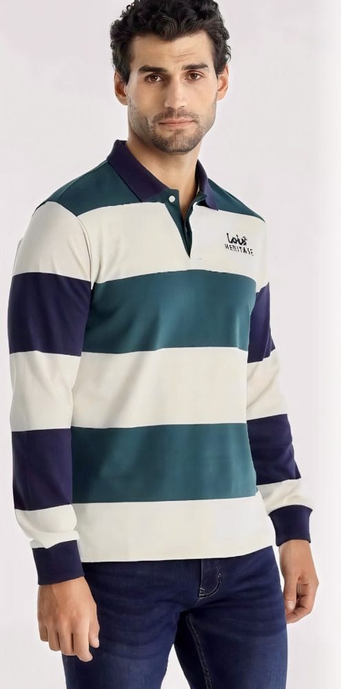 Polo de manga larga de Lois. Con estampado de rayas azules y verdes.