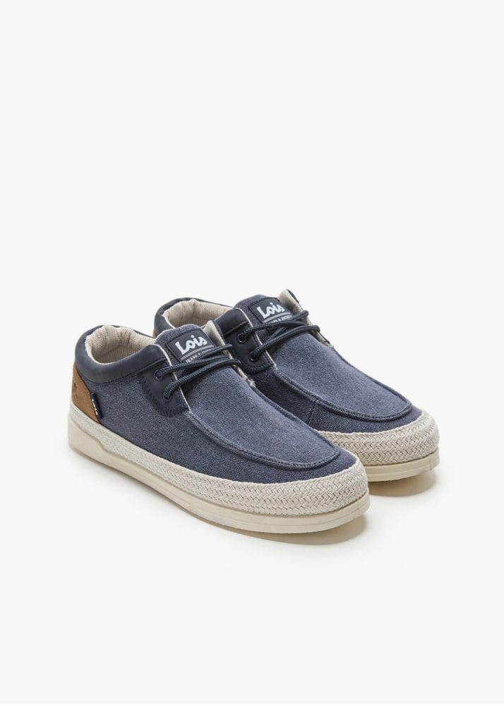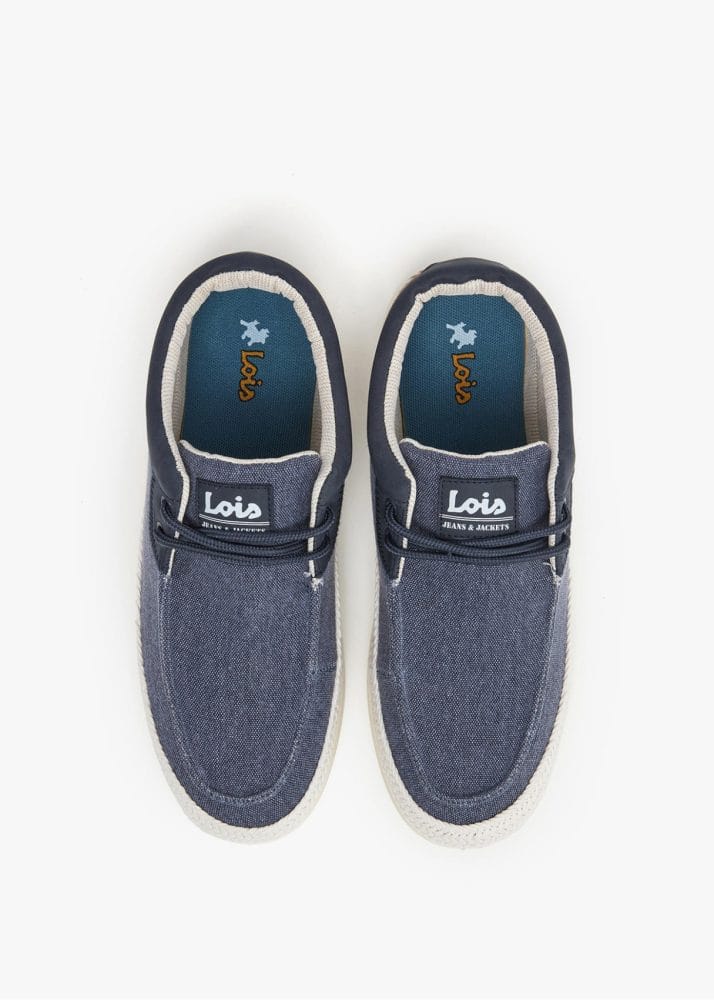 Zapatillas azul marino con mezcla de materiales y suela con detalle en yute. Forro transpirable y plantilla acolchada.