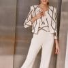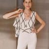 Mono combinado en color crudo y negro. Pantalón recto fluido.