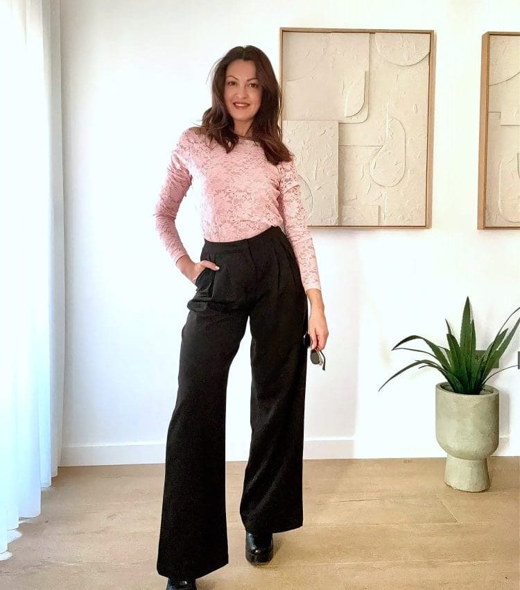 Pantalón tipo traje amplio en color negro con pinzas. Dos bolsillos laterales.
