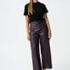 Pantalones culotte efecto piel, con costuras frontales, cinturón removible y cierre de cremallera lateral.