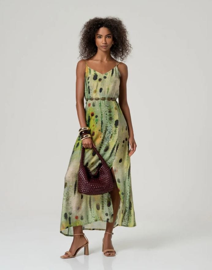 SURKANA Vestido largo tirantes estampado verde Ref. Mizy