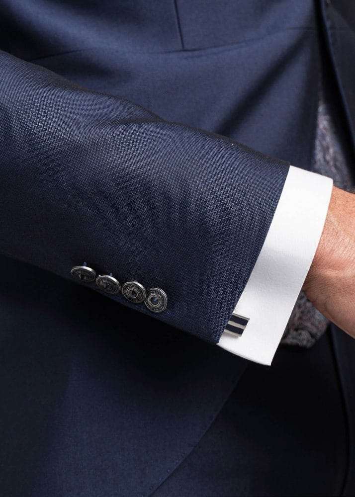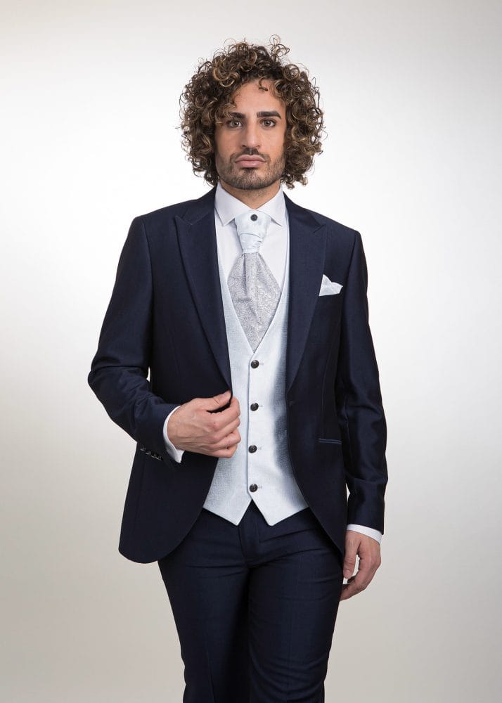 Traje de ceremonia clásico de corte regular fit en color azul marino. Cuello solapa.