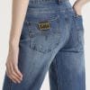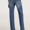 Jeans mom fit en tono azul lavado. De tiro medio. Cierre con cremallera y botón.