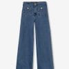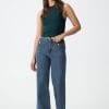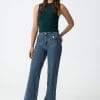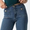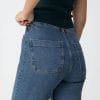 Vaqueros con bolsillos de parche. Cierre frontal de cremallera con botón metálico.
