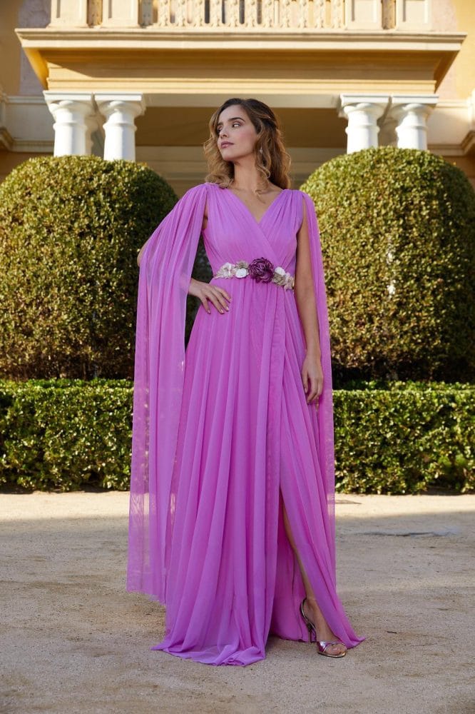 Vestido largo damas manga capa rosa Ref. 2834