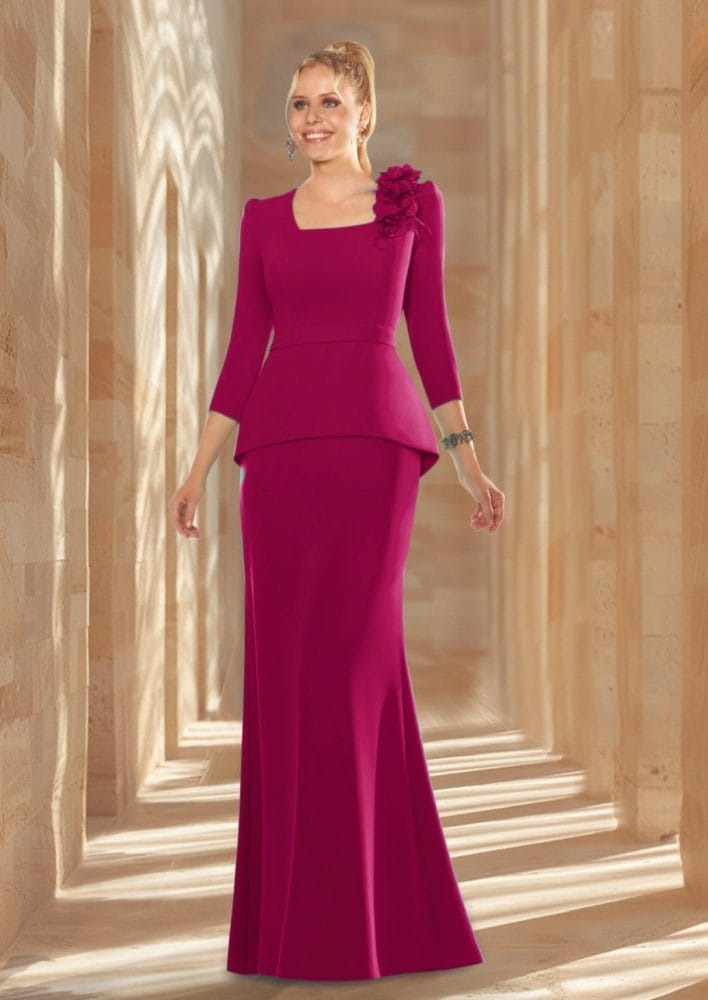 Vestido largo escote cuadrado fucsia Ref. 703