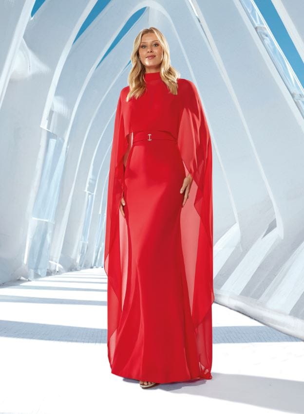 Vestido largo liso capa rojo Ref. 840