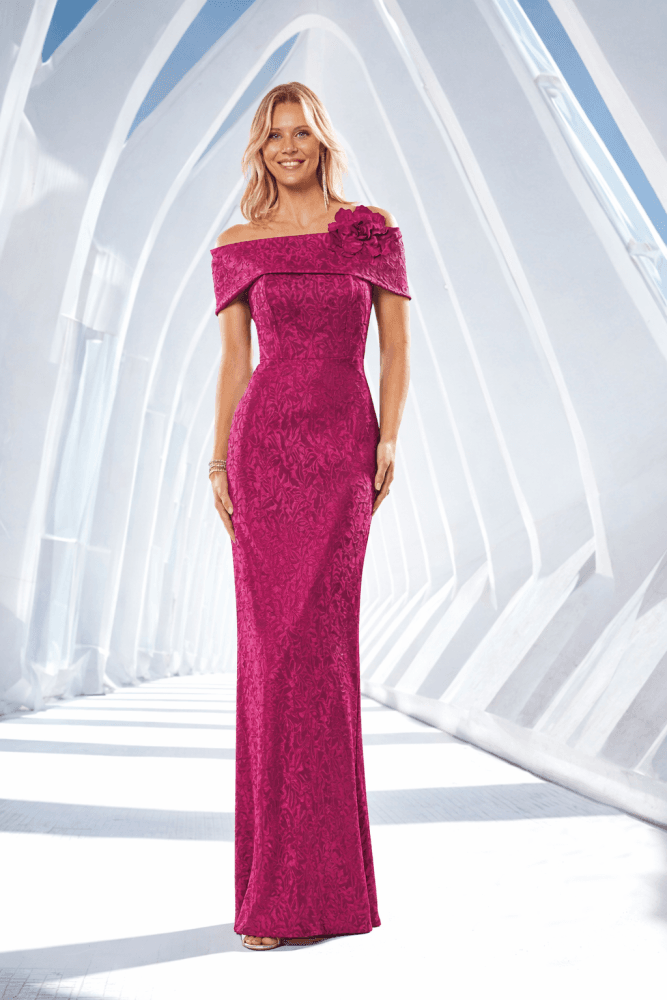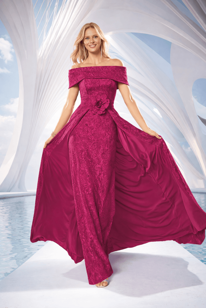 Vestido largo palabra de honor con sobrefalda buganvilla Ref. 838